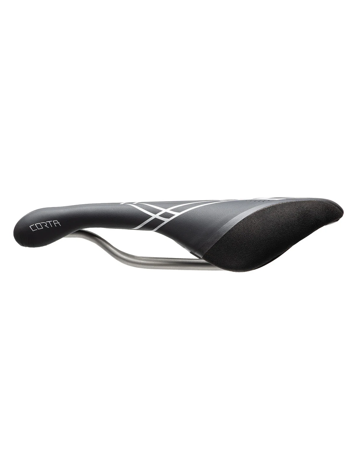 The Corta has a shorter overall length and a dropped nose which combine to eliminate excess surface area, prevent chafing and alleviate pressure. We've also engineered it with our largest cutaway for the greatest relief channel possible. It's supportive and flat at the rear so you have a good platform for sustained, seated climbs. Aesthetically, the Corta is a streamlined beauty with textural detail and state-of-the-art technology.