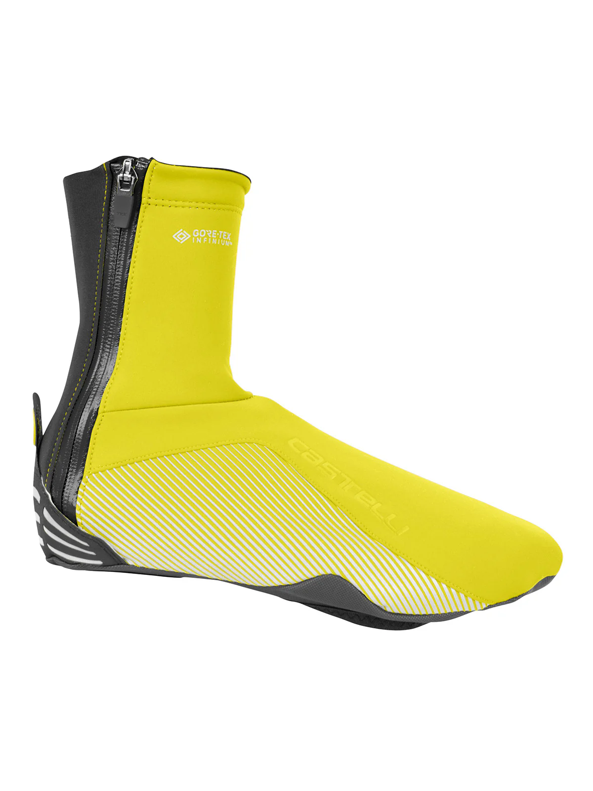 Decades of sponsoring pro riders gives Castelli the high ground for high performance cycling solutions. We're extra excited by the fact that they also develop a dedicated women's product line, on par with their men's offerings. The Dinamica Shoecover with GORE-TEX INFINIUM WINDSTOPPER fleece-backed fabric keeps wind and the wet out, and warmth in. Silicone grip at the top of cuff effectively provides a seal against weather creeping in. Women-specific fit with reflective side panel print for visibility.