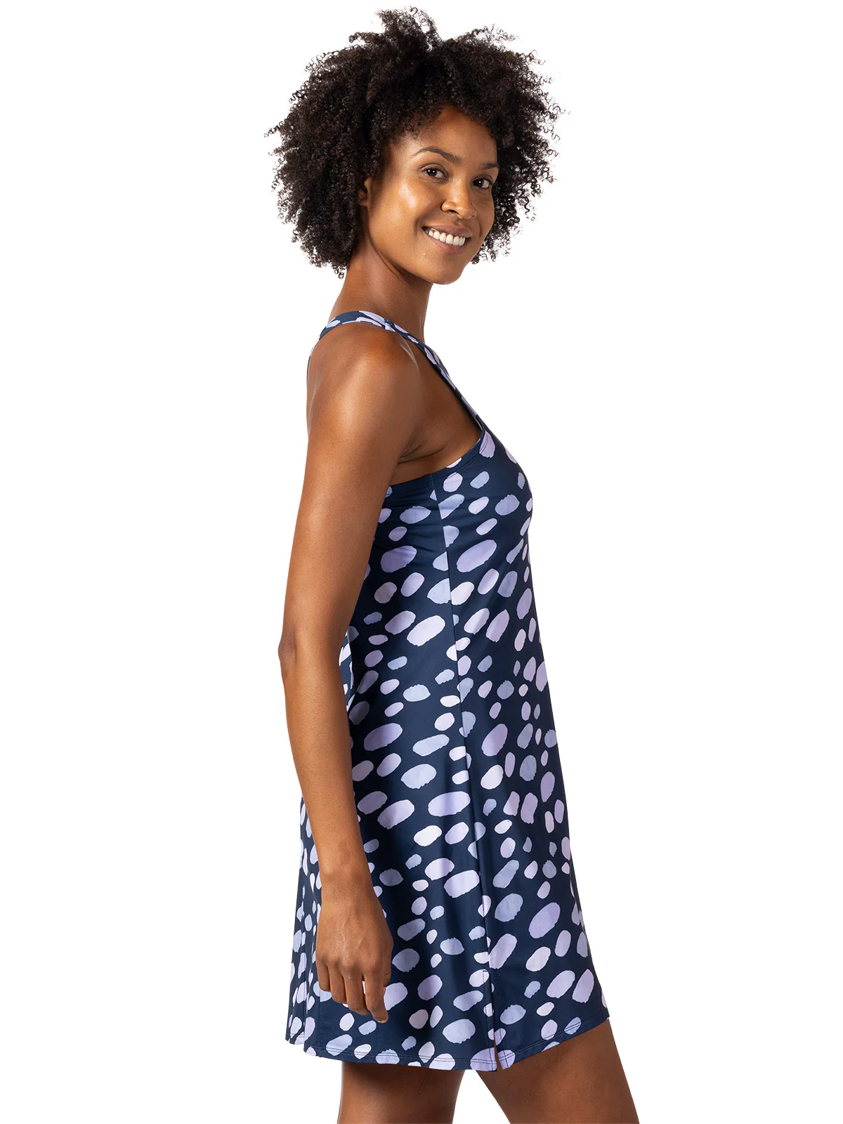 The simplicity and ease of putting on a soft and flowy dress after the ride is a given. New for 2025, our Easy Rider Dress takes one-decision dressing to another level via superfine fabric with peached softness next to skin. High front neckline coverage, reinforced with a built-in bra lining, makes it a viable on-bike option, too. Wide cross-strap rear and a mid-back open pocket round out the cycling features. Semi-fitted.