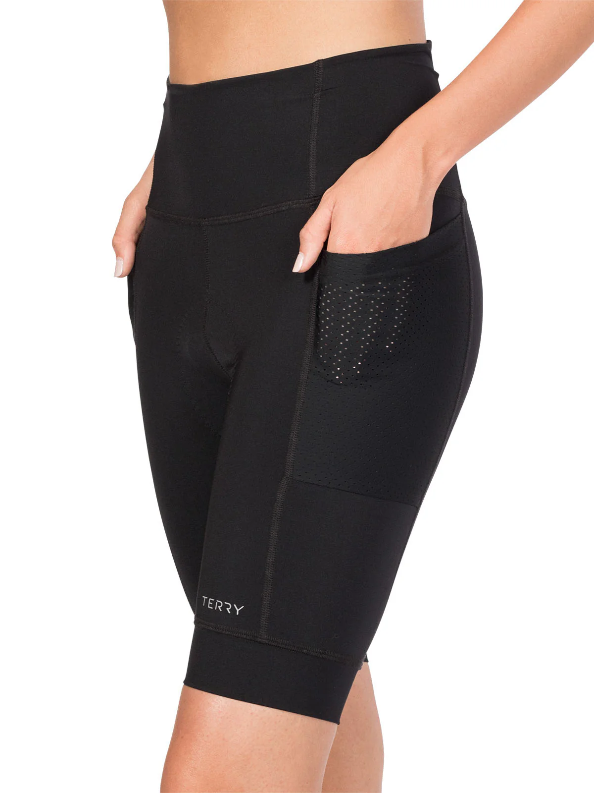 Our highest rise shorts, available in sizes for all. In addition to a comfortably wide, high rise waist, we've engineered the Holster Short with deep, stretchy, perforated pockets at both sides for quick, convenient access. Equipped with a slightly higher level of compression, the Holster is an all-day endurance short thanks to Terry's Flex Air Chamois. It's a great choice for all kinds of riding from gravel to touring to mountain biking. 8.75 inch inseam.