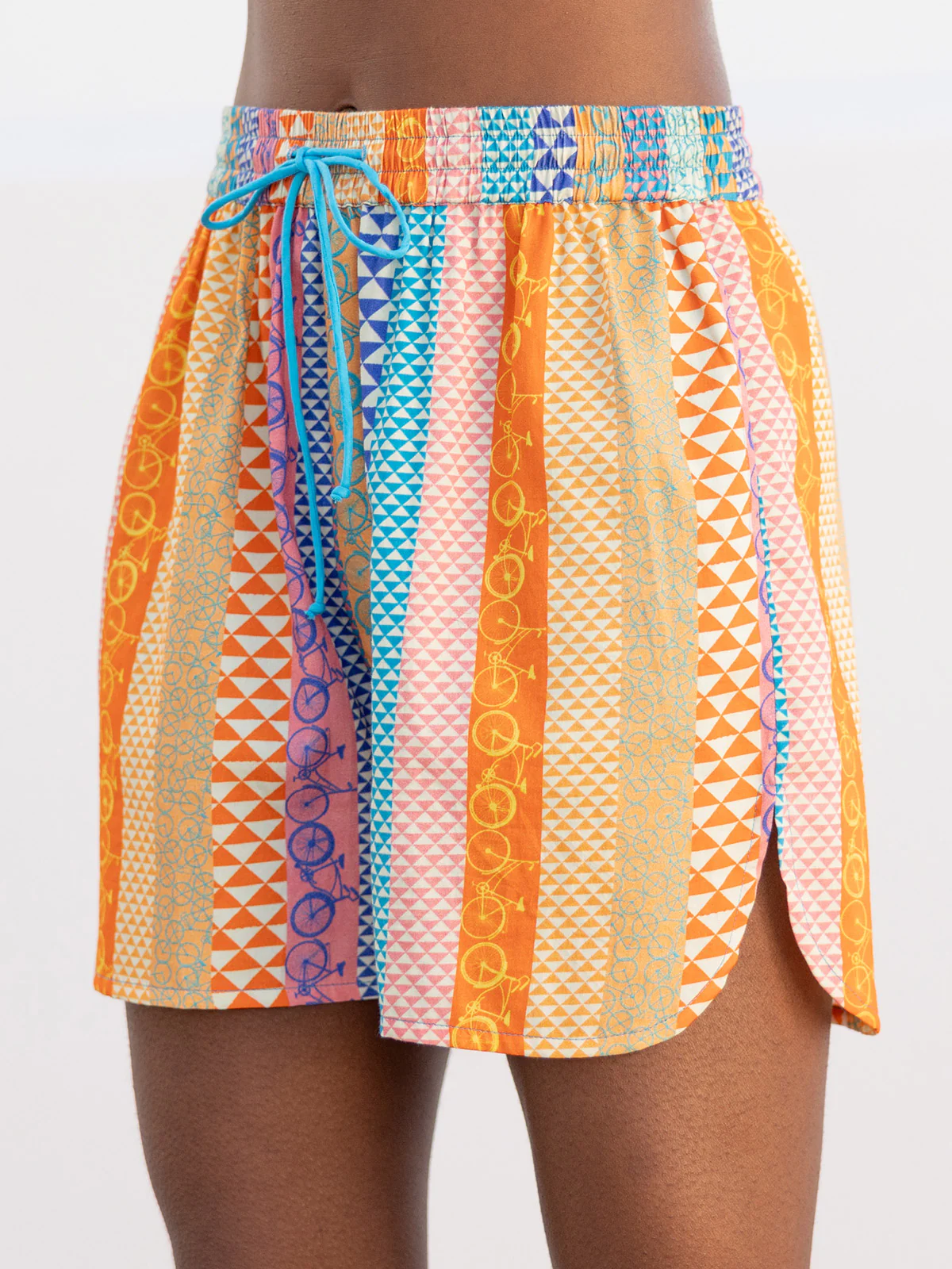 This exclusive little PJ short offers easy, pull on style with a comfortable, elastic waistband and coordinating tie chord and trims; 2 side slit pockets and a dreamy, mezmerizing print. Designed exclusively for Terry by Benares. 3 inch inseam. Relaxed fit.