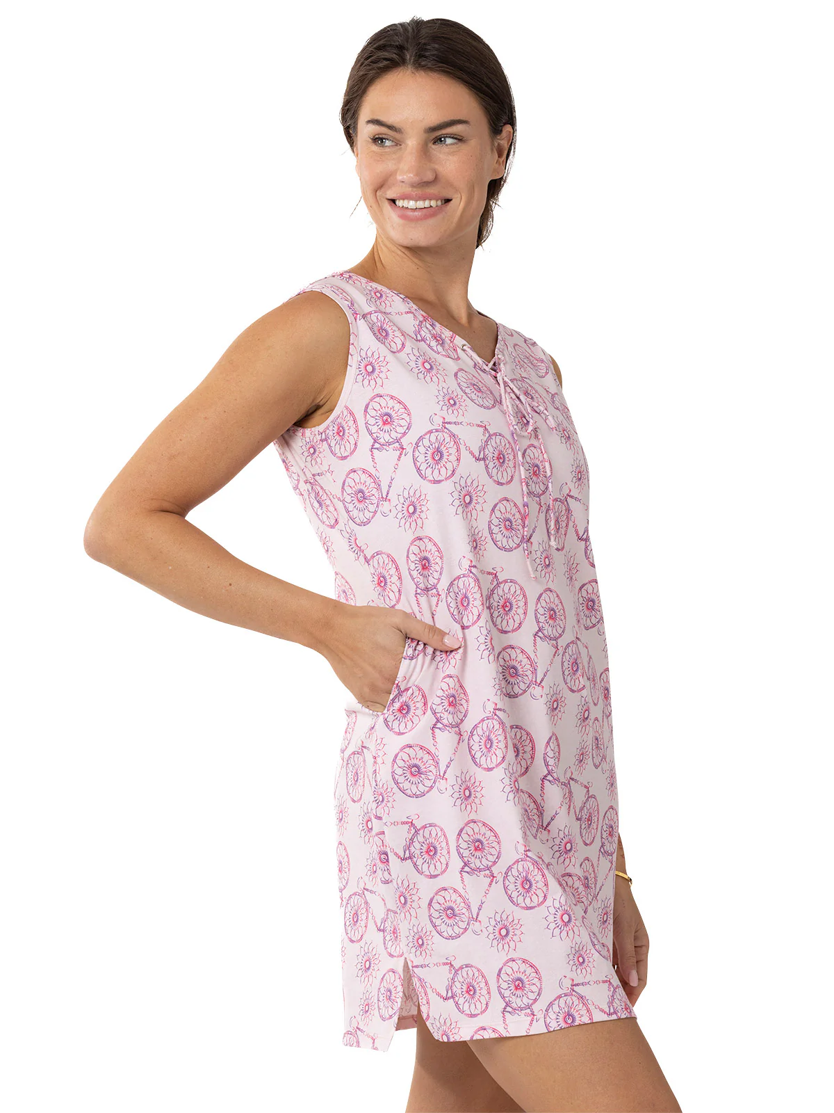 Simply styled with a flattering v-neck; 2 hand pockets and side slits at the bottom hem, the PJ V-Nighty also offers transformative powers beyond the zzz's to even make a transition into loungewear, making them a great choice to pack along on your next bike tour. Semi-fitted without being restrictive to gently hug your curves.