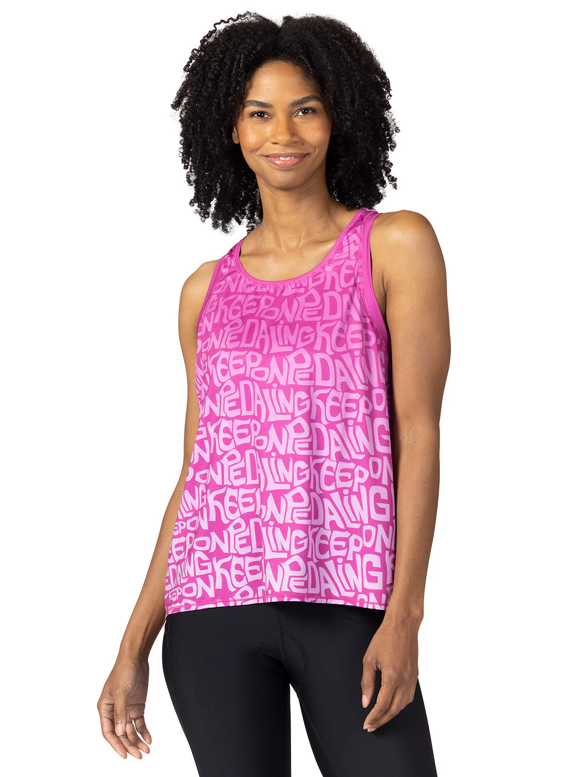 We combined a lightweight micropoly spandex with a full mesh back to give the Studio Top superior ventilation for indoor cycling. But we didn't stop there; the front has a lovely ombre and the rear mesh is beautifully printed and has open pockets. It's a traditionally constructed tank so you can wear virtually any bra underneath. Flowing, relaxed fit.